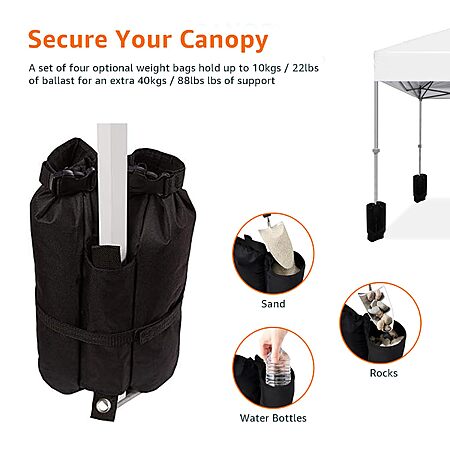 Amazon[amazon.com] has 10' x 10' Amazon Basics Outdoor One Push Pop Up Canopy w/ Wheeled Carry and 4-Pack Weight Bag (White) for $76.99. Shipping is free.