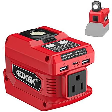 $27.99* | Azocek 220W/18V Battery Power Inverter Power Station w/ 400LM LED Work Light (Red) at Amazon