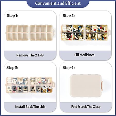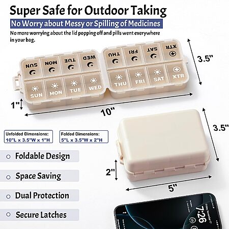 Double Protection – Leak-Proof & Secure: Double-layer security: internal lids plus an external latch keep pills safely contained. Even when shaken or bumped, your medication stays secure with no risk of spills.