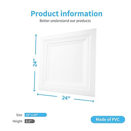Art3d 12-Pack Square Drop Ceiling Tile 2ft x 2ft in White, PVC Ceiling Panel 24 x 24in. - Compatible with 15/16" Drop Ceiling Grid System