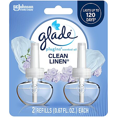 Glade PlugIns Refills Air Freshener, Scented and Essential Oils for Home and Bathroom, Clean Linen, 1.34 Fl Oz, 2 Count for $2.68