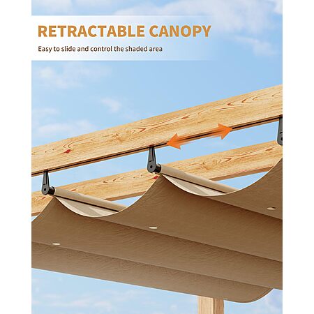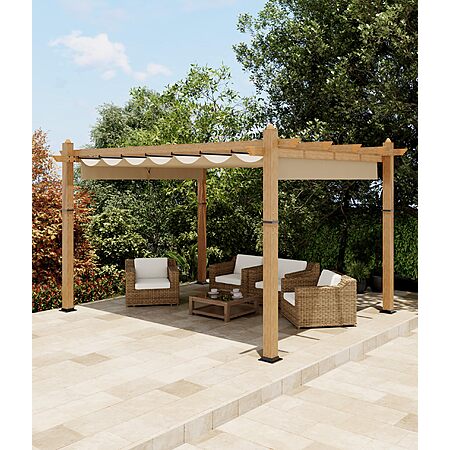 10'x13' KYBOLT Outdoor Aluminum Faux Wood Grain Patio Pergola w/ Retractable Canopy (Khaki) $251.98 + Free Shipping