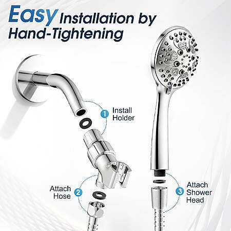 - Tool-Free Installation in 3 Minutes: Get your new shower running in no time! Simply hand-tighten the connections for a secure, leak-free setup.