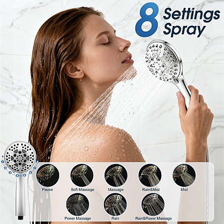 - 8 Spray Modes: Take full control with just a twist. Effortlessly switch between 8 distinct sprays—from a gentle Rainfall to a massaging Jet Stream, plus specialized Wide Fan and Point Jet modes for targeted cleaning and quick rinses.