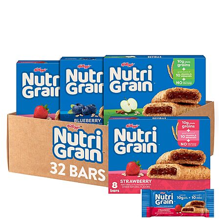 Nutri-Grain Soft Baked Breakfast Bars, Kids Snacks, Whole Grain, Variety Pack (4 Boxes, 32 Count)~$9.48 With S&S @ Amazon