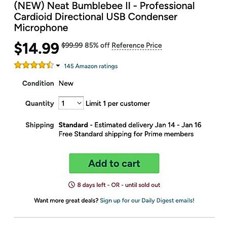 (NEW) Neat Bumblebee II - Professional Cardioid Directional USB Condenser Microphone $14.99