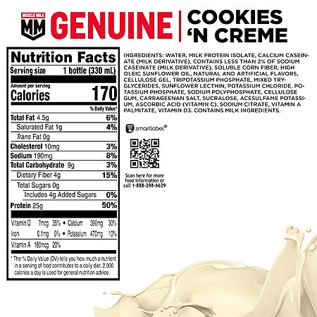 12-Pack 11-Oz Muscle Milk Genuine Protein Shake (Cookies and Creme) $19.90 w/ S&S + Free Shipping w/ Prime or on $35+