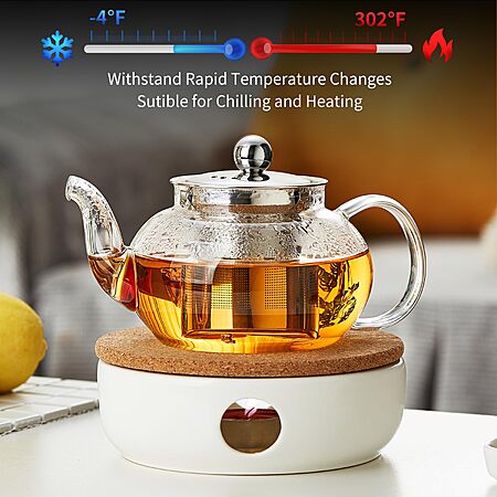 Glass Teapot with Removable Infuser, 20 oz/600ml Glass Tea Pot Small Borosilicate Tea Steeper Kettle with Loose Leaf Tea Strainer - $7.29