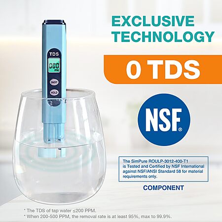 • NOTE: If you enjoy filtered water with a low TDS value, we recommend getting the SimPure T1-400UV reverse osmosis water filter. This system delivers clear water with a TDS level close to 0 ppm if your tap water has a measurement below 200 ppm. If you prefer alkaline water, consider the SimPure T1-400ALK RO system. This filter enhances the pH level of filtered water by incorporating minerals through the alkaline filter and please know that the TDS value will not reach 0 ppm