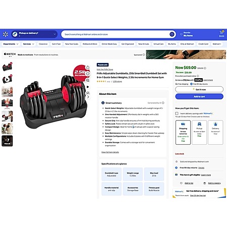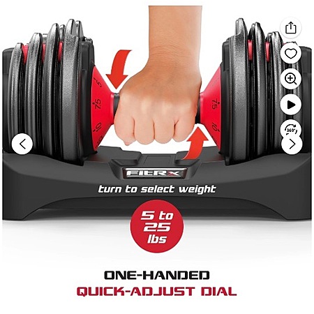 FitRx Adjustable Dumbbells, 25lb SmartBell Dumbbell Set with 9-in-1 Quick-Select Weights, 2.5lb Increments for Home Gym $69