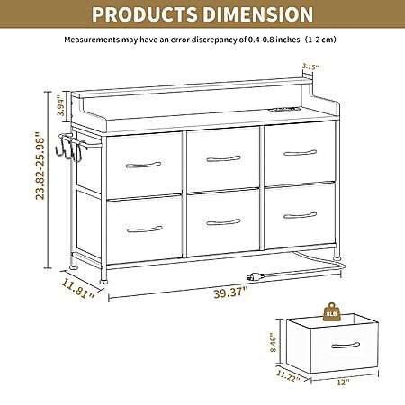 Leadpro Dresser for Bedroom with 6 Drawers, LED TV Stand Dresser with Charging Station (Rustic Brown) - $52.26