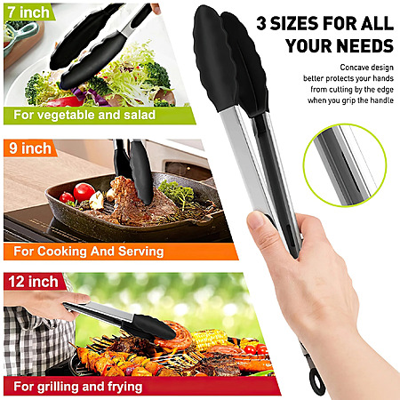 GPED Heat-Resistant Stainless Steel Kitchen Tongs Set $9.99