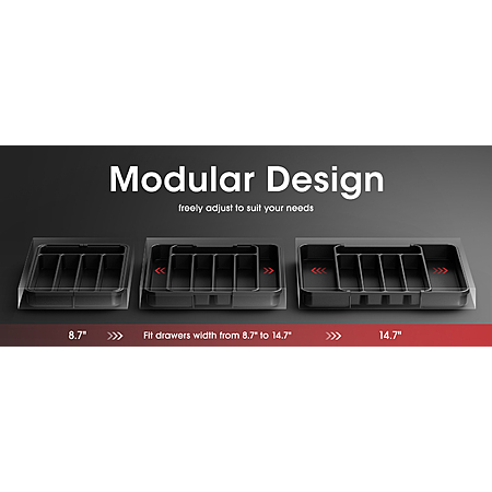 - Expandable drawer organizer with 5-7 adjustable compartments