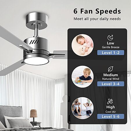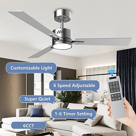 42" AHAWILL Reversable DC Motor Ceiling Fan w/ Light (Silver) on sale for $69.99 - 50% off when you enter the coupon code