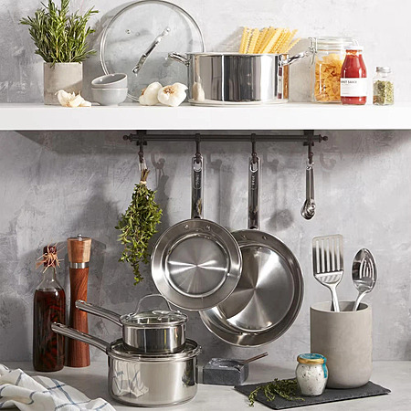 eBay has T-fal Performa Stainless Steel Cookware, 14pc Set, Silver for $53.99 after $5 discount added at checkout. Shipping is free.