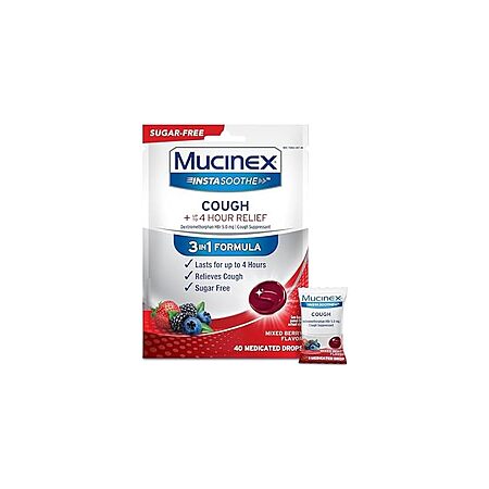 Mucinex Instasoothe Sugar Free Cough Drops, Mixed Berry Medicated Cough Drops, 40ct - $2.49