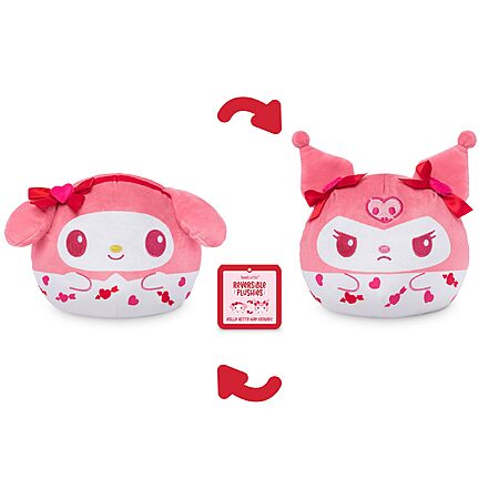 TeeTurtle My Melody and Kuromi Reversible 6" Sanrio Plush (Pink and Red Hearts)