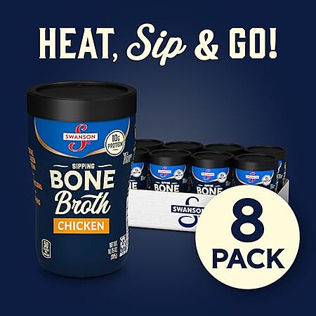 [S&S, AC] $20.48* | 2 × 8-Pack 10.75-Oz Swanson Bone Broth Microwavable Sipping Cup (Chicken) ($10.24 each) at Amazon ($1.28 each)