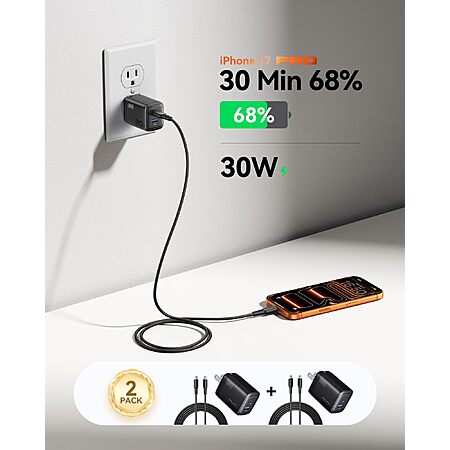 INIU for iPad Air Pro Charger, 30W 2-Pack iPad Charger Fast Charging with USB C to C Cable Cord, Compact Foldable Cargador for iPad Pro 13 12.9 11, iPad Air 11, iPhones $15.28