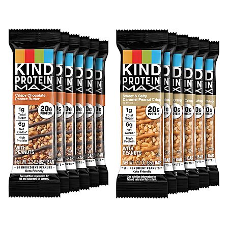 S&S KIND Protein MAX Variety Pack, High Protein Bars, Keto Snacks, 1g Sugar, 20g Protein, (6) Crispy Chocolate Peanut Butter (6) Sweet & Salty Caramel Crisp, 12 Count Pack for $17