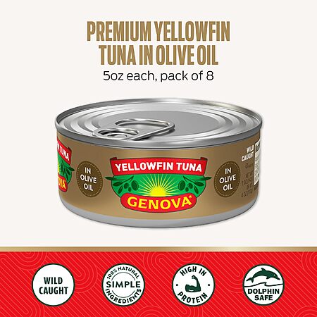 8-Pack 5-Oz Genova Premium Wild Caught Yellowfin Canned Tuna (Olive Oil) $14.53 w/ Subscribe & Save