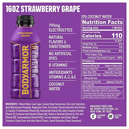 12-Pack 16-Oz BODYARMOR Sports Electrolyte Drink (Various) $9.49 w/ S&S + Free Shipping w/ Prime or on $35+