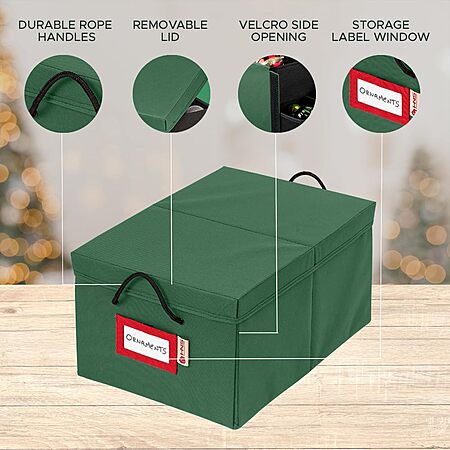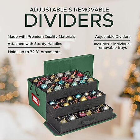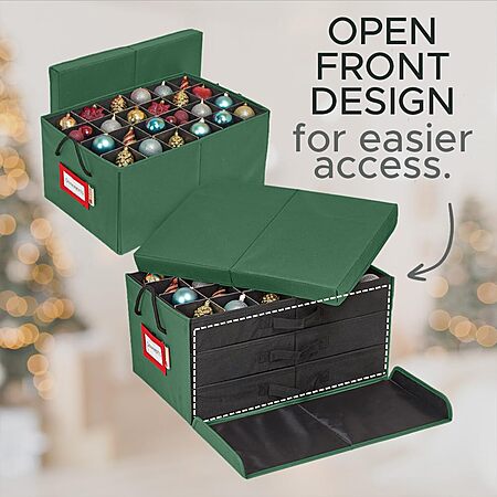 HOLDN’ STORAGE Christmas Ornament Storage Box with Dividers, Holds 72 Ornaments (3 Inch), Large Ball Storage Container with 3 Removable Trays, Durable and Portable - Green $19.99