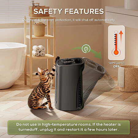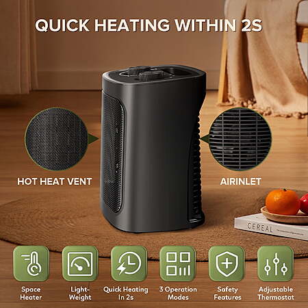 $14.99*:Auseo Space Heater – 750W/1500W Ceramic Fan Heater, 2S Rapid Heating, Multiple Safety Features, Black/White