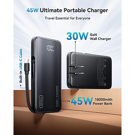 Model: INIU 3-in-1 Portable Charger, 45W 10000mAh Fast Charging Power Bank, Built-in USB C Cable & Foldable Wall Plug, Travel Essentials, Battery Pack for iPhone 17 16 15 Series, Samsung, MacBook, etc.