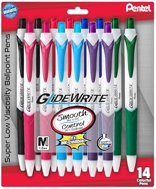 [S&S] $13.29 | 14-Count Pentel GlideWrite Ballpoint Pen with TechniFLO Ink, 1.0mm, Medium Line, Assorted Ink at Amazon