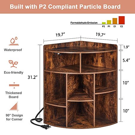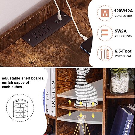- 【Built-in Charging Station】 Designed for modern life, this corner cube shelf comes with 2 USB ports and 3 AC outlets (120V/12A), ideal for fast charging your phone, tablet, laptop, Bluetooth headset, or night lamp. The 6.5 ft power cord offers placement flexibility in any room.