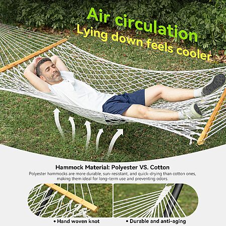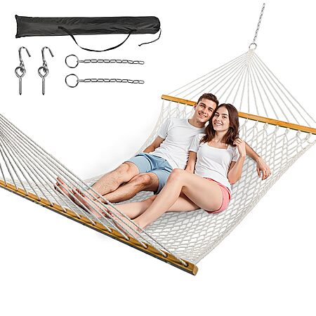 ANAGOO Double Hammock for 2 Person, Handwoven Rope Hammock with Spreader Bar Without Stand - Indoor & Outdoor Use for Patio, Poolside, Backyard (White) $59.49