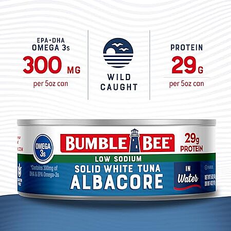 [S&S, AC] $11.96* | 12-Pack 5-Oz Bumble Bee Low Sodium Solid White Albacore Tuna in Water at Amazon (99.7¢ each)