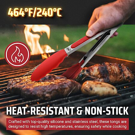 Kaluns Kitchen Tongs for Cooking Grilling Set of 4, BBQ Grill Tongs With Silicone Tip Stainless Steel Heat Resistant, Non-stick Pull Lock, Incl 7, 9, 12 Inch $6.64