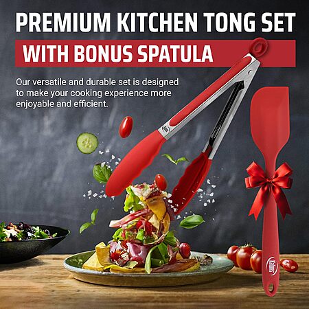 Model: Kaluns Kitchen Tongs for Cooking, Non Stick Silicone Tip Stainless Steel Tongs, Set of Four 7,9, and 12 Inch Tong Plus Silicone Spatula Non-stick, Heat Resistant Serving Utensils