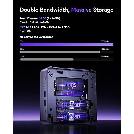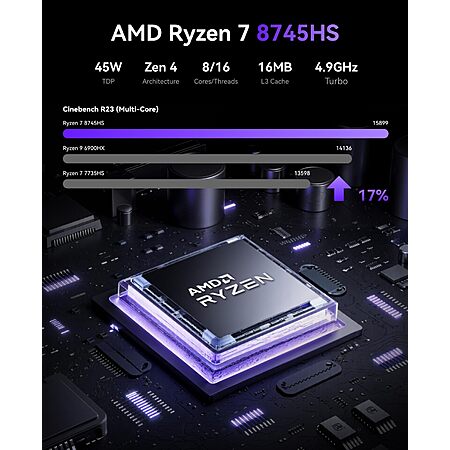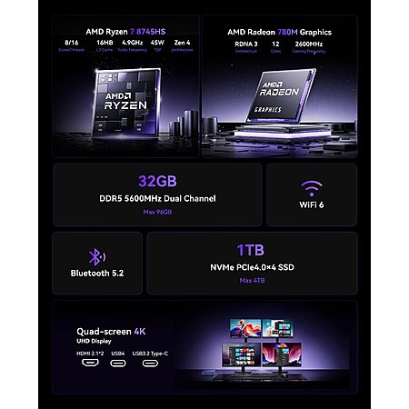 KAMRUI AM21 Mini PC, AMD Ryzen 7 8745HS (8C/16T, up to 4.9GHz), 32GB DDR5 5600MHz RAM, 1TB M.2 2280 PCIe 4.0 SSD, Mini Desktop Computer with Radeon 780M, USB4 $499.98