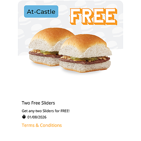 White Castle 2 free sliders for Craver Nation rewards members through 1/8
