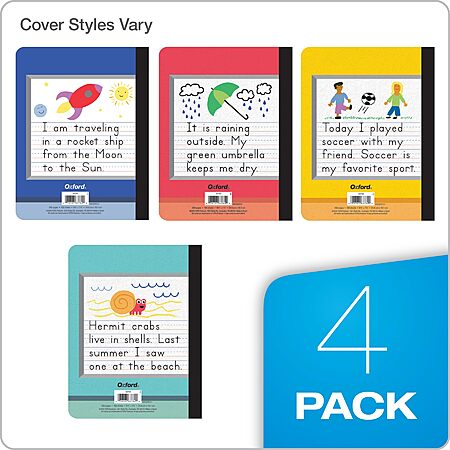 4-Pack Oxford Primary Composition Notebooks, Kids Handwriting & Drawing Story Journal, 100 Sheets/200 Pages $2.77 + Free Shipping w/ Prime or on $35+