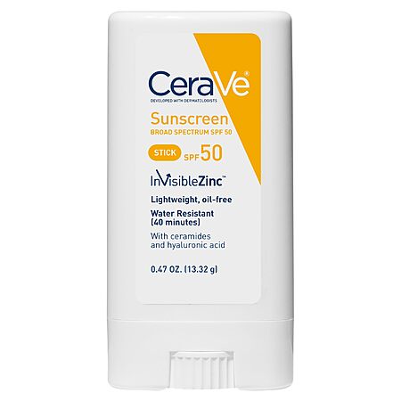 Model: CeraVe Mineral Sunscreen Stick SPF 50, Broad Spectrum SPF + Hyaluronic Acid + Ceramides, Titanium Dioxide & Zinc Oxide, 100% Mineral Face Sunscreen Stick, Fragrance Free & Oil Free