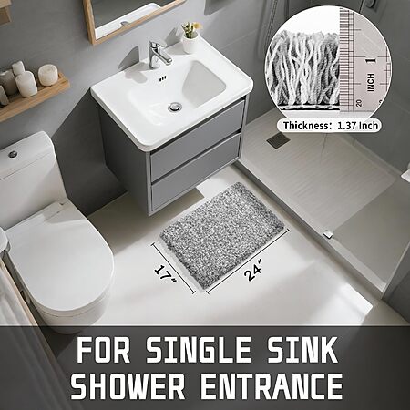 Non Slip Washable, Ultra Soft and Water Absorbent Bath Mats, Plush Fluffy Shower Mat Outside, Microfiber Thick Matts for Bathroom Floor/Sink, 24x17, $9 FS Prime AMAZON