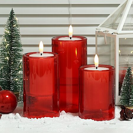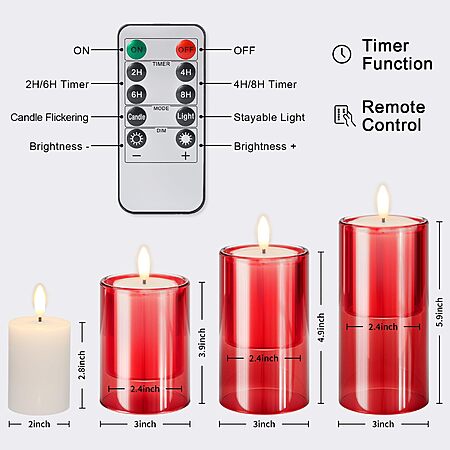 NURADA Flameless Candles with Remote Timer - Glass Real Wax 3D Wick LED Pillar Votive Candle Set - Red 3 Pack - $9.99