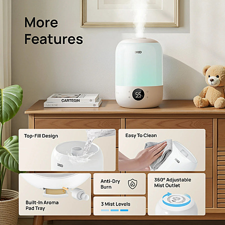 Model: DREO Cool Mist Humidifier for Room, 3.7L Top-Fill & 35H Runtime Ultrasonic Humidifier, Custom Humidity Setting, Light Indicator & Aroma Tray, 26dB Quiet Humidifier for Home, Baby Bedroom, White