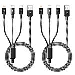 2-Pk 4' KEHIPI 3-in-1 Braided Charging Cable (USB-C, Lightning, Micro-USB)