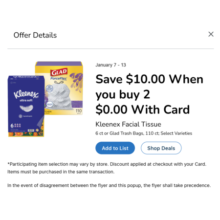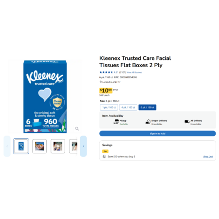 Kleenex Facial Tissues ~ 12 boxes x 160 tissues for $11.99 ~ Kroger B&M