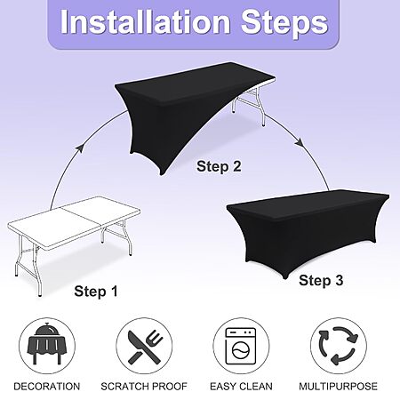 ABCCANOPY 2 Pack 8 FT Black Spandex Table Cover Stretch Fitted Wrinkle Resistant Tablecloth Reuse 96" x 30" (Rectangular) $12.47 +FS
