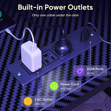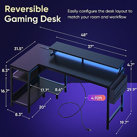 DUMOS Gaming Desk, Computer Desk with USB Charging Ports, Power Outlets, Type-C and LED Lights, Reversible L Shaped Desk with Storage Shelves & Monitor Stand Black 48IN $69.99