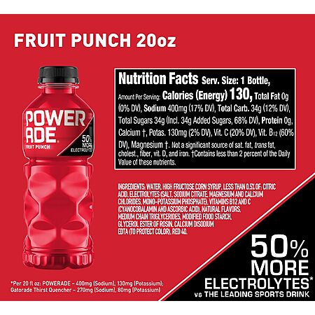 Powerade Fruit Punch, Electrolyte Enhanced Sports Drink, 20 Fl Oz Bottles 8 Pack $3.86 S&S Amazon