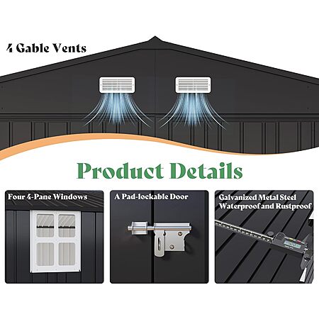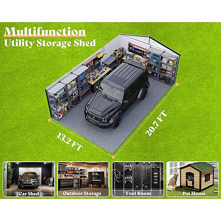 AMERLIFE 13x21x8 FT Heavy Duty Metal Garage Shed $1299.99