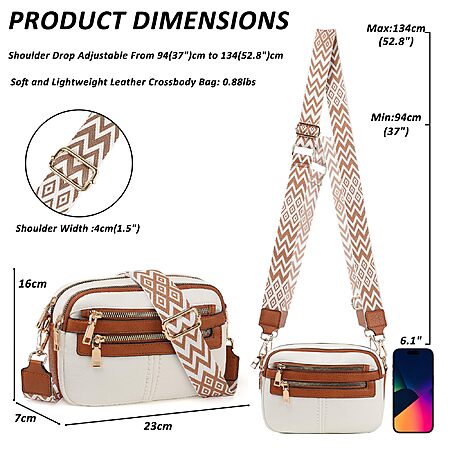 TANTOMI Women's Crossbody Bags w/ 6-Pockets (White/Light Brown)