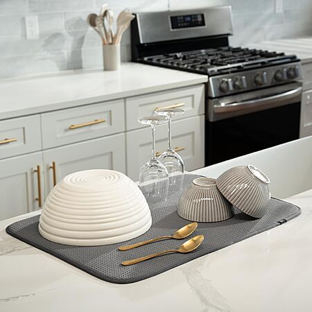 S&T INC. Dish Drying Mat XL, 18" x 24", Absorbent Microfiber Kitchen Counter Mat, Dish Drying Pad for Dishes, Utensils, Pots and Pans, Extra Large, Charcoal $11.99